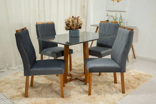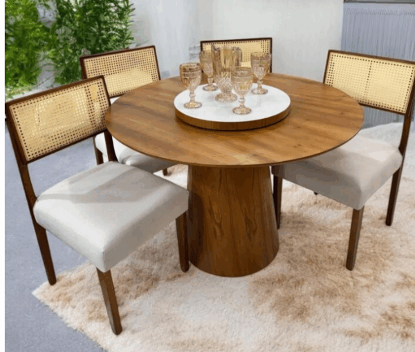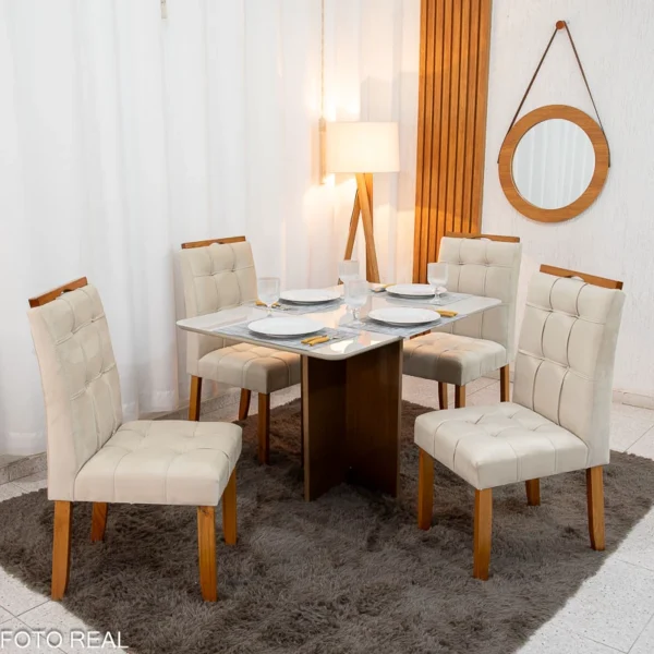 Mesa Pedro 90×90 Mel/Off White com 4 Cadeiras Sophia/Capri Mel/Veludo – ART ASSENTOS + WM DECOR (tt)