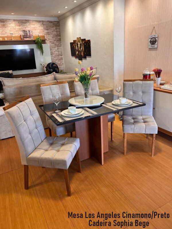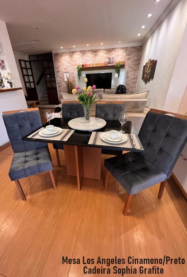 Mesa Los Angeles 90 Cinamono/Preto com 4 Cadeiras Sophia/Capri Veludo Azul – MINASPLAC + WM DECOR