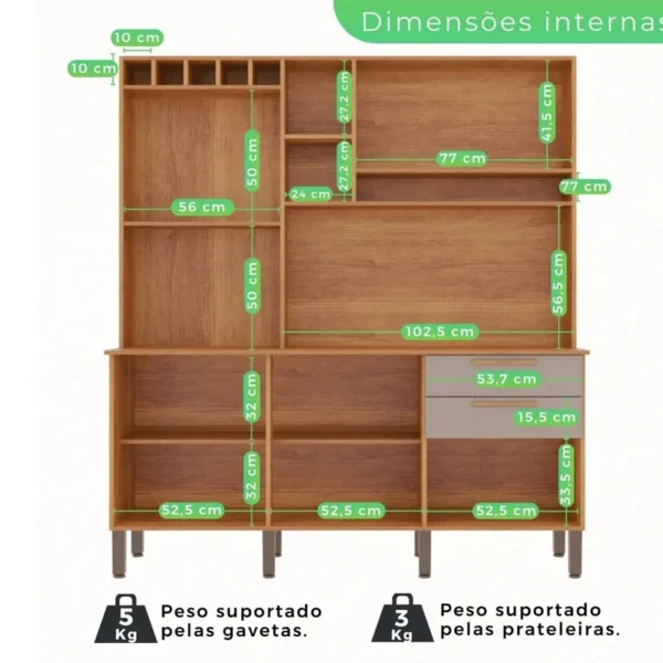 Armário Cozinha New Topázio Cinamomo/Off 6 Portas 2 Gavetas Larg. 1.65m – Sallêto