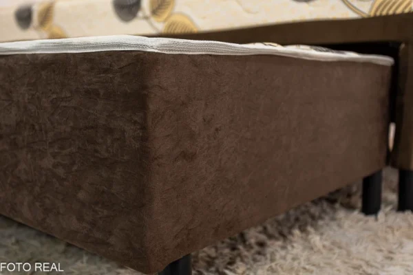 – Revestimento: Tecido 100% poliéster metalasse com 2,00 cm de espuma D-20. (Manta Conforto) Lateral Faixa sued