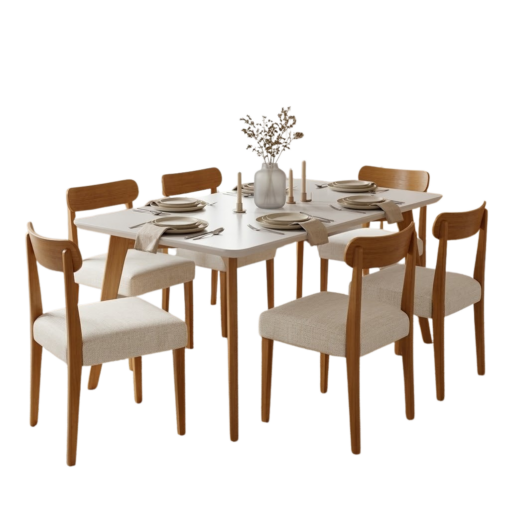 Mesa Anne 180 Mel/Off White com 6 Cadeiras Maragogi Linho Palha 311A – HR MOVELARIA