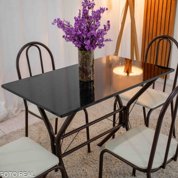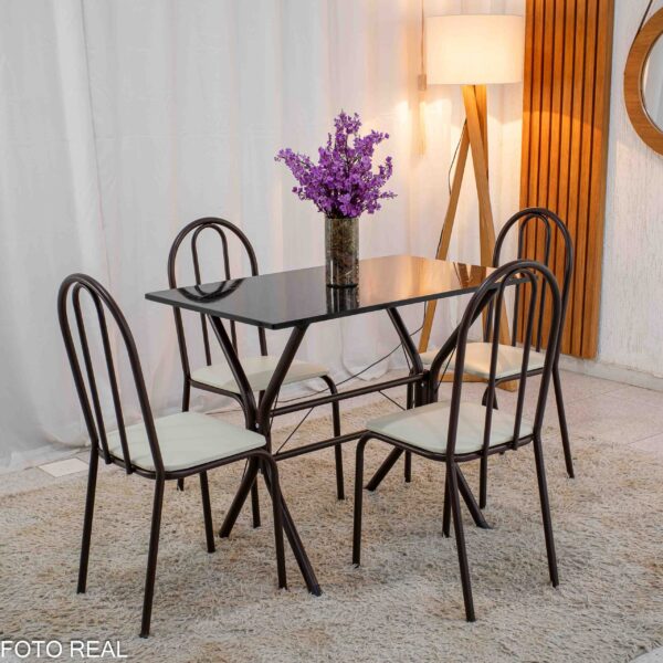 Mesa de Cozinha Base Cabo Frio Marrom Tampo Preto Pedra 100×60 4 Cadeiras Ubatuba Marrom Assento Branco – Teixeira