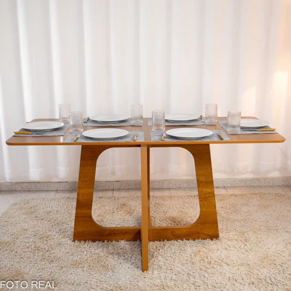 – Essa mesa tem o tamanho ideal para acomodar 6 cadeiras perfeitamente