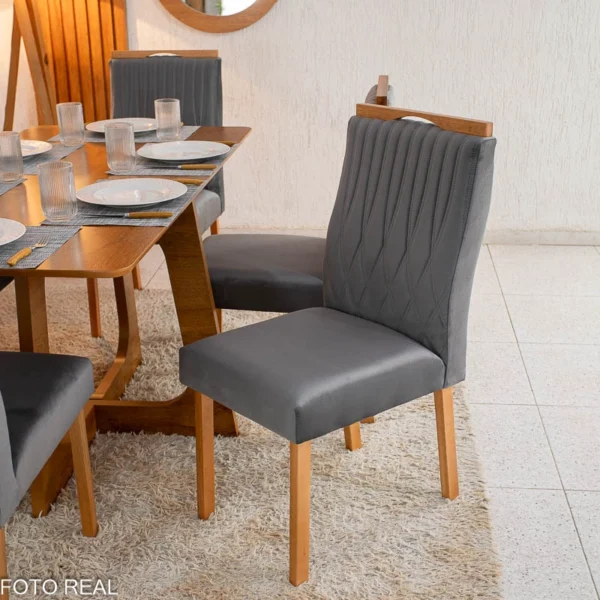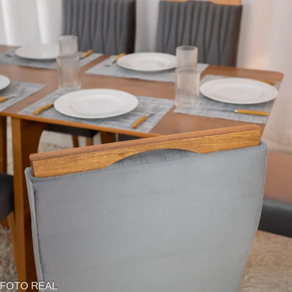 Mesa de Jantar Dubai Tampo Londres Cinamomo 160×80 6 Cadeiras Genova Veludo Cinza 507 Madeira Maciça