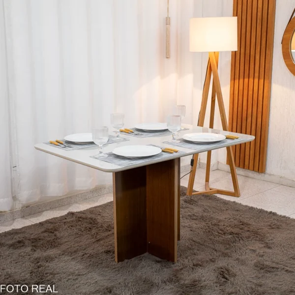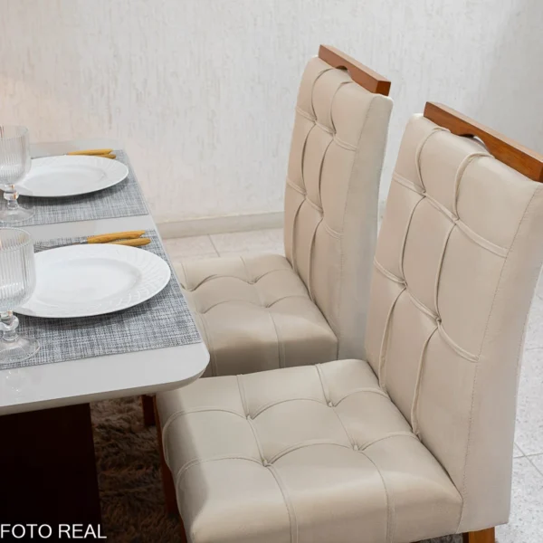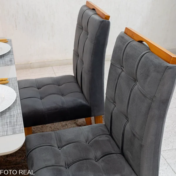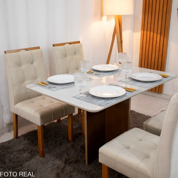 Mesa de Jantar Moscou 120×80 Cinamomo/Off Tampo Vidro Off 4 Cadeiras Londres Veludo Madeira Maciça Minas Plac –