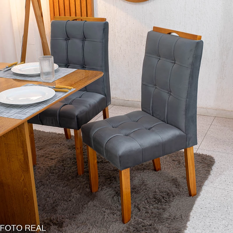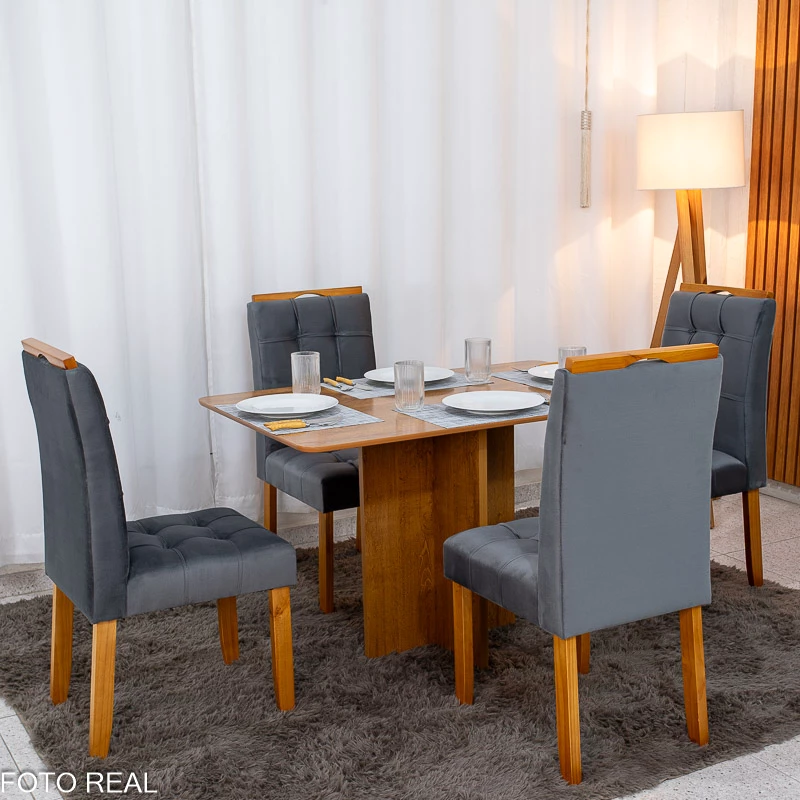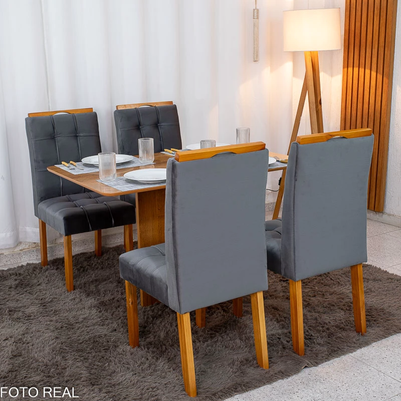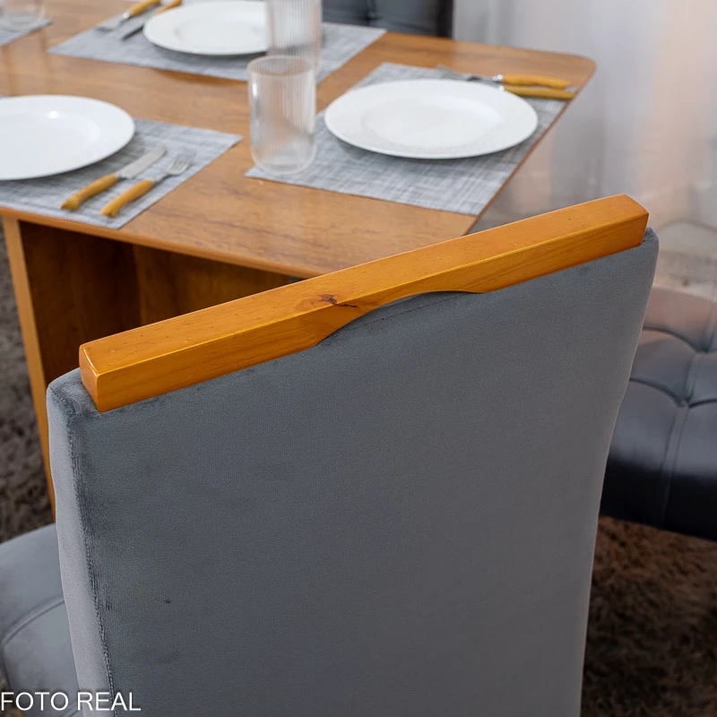 Mesa de Jantar Salina 120×80 Tampo Londres Cinamomo 4 Cad. Londres Veludo Chumbo Madeira Maciça Minas Plac – Entregue Montada