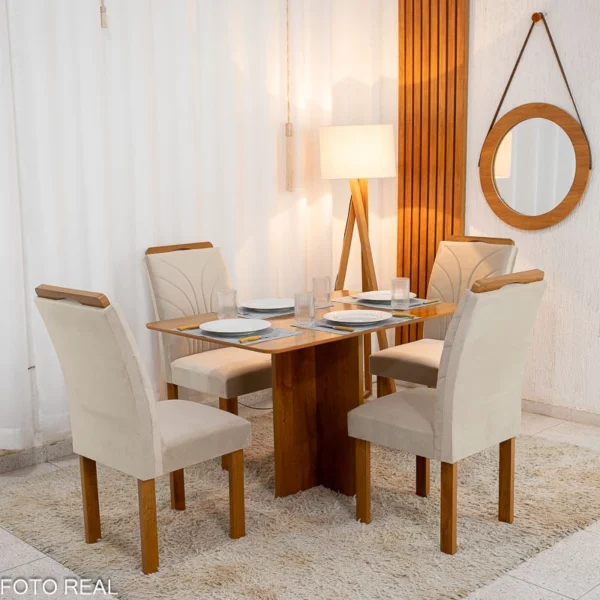 – Essa mesa tem o tamanho ideal para acomodar 4 cadeiras perfeitamente