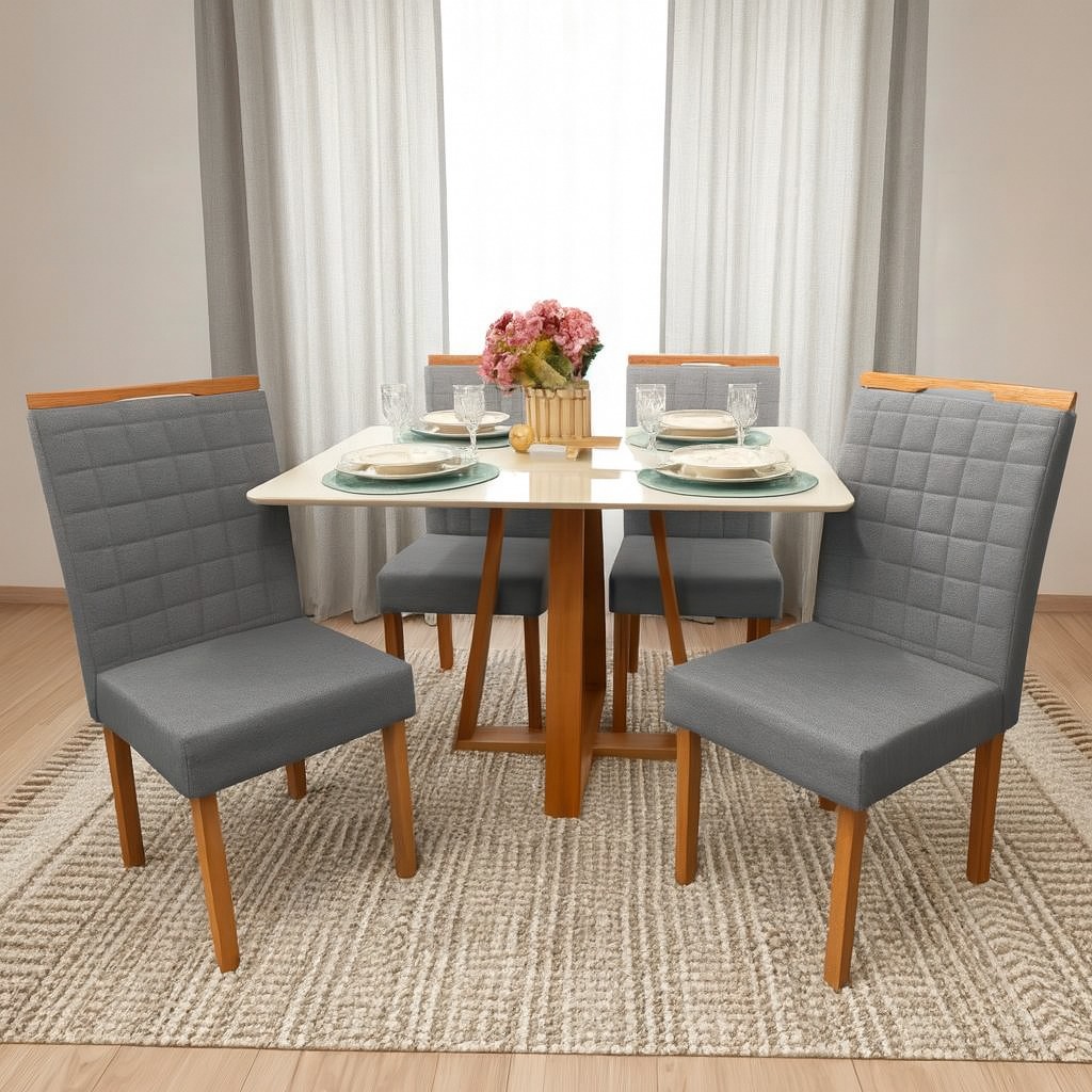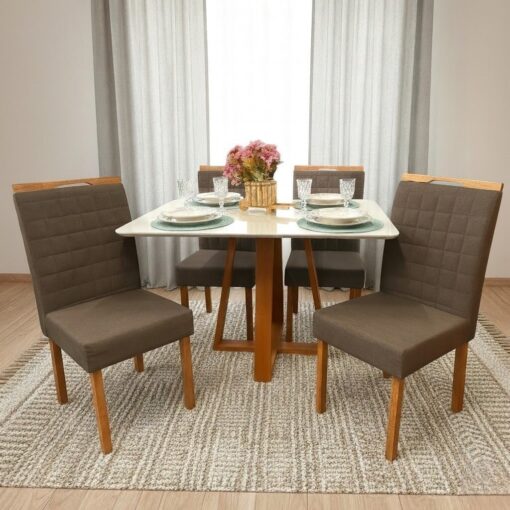 Mesa Pedro 120 Mel/Off White com 4 Cadeiras Pandora 01 Imbuia Mel/Veludo ART ASSENTOS + CARVALHO DECOR