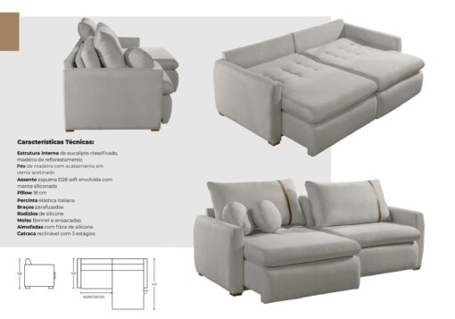 Sofá Cama Retrátil Lagoon 2,30 m Linho – CONFORT LAR ESTOFADOS