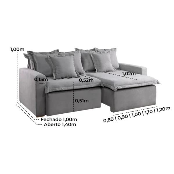 – Enchimento das almofadas fibra de poliéster siliconado de alto conforto;