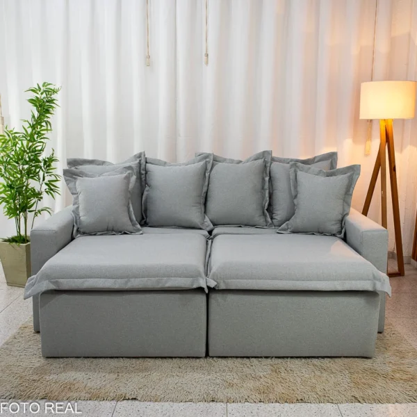 – Tecido linho: O linho possui uma textura naturalmente sofisticada, que confere ao sofá um aspecto elegante e atemporal. Seu visual suave e agradável pode dar um toque de classe à decoração de qualquer ambiente.