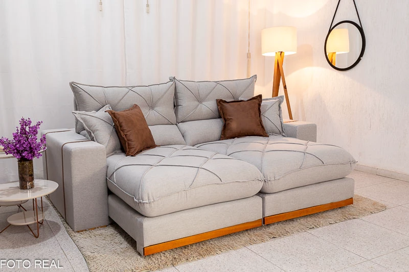 Informamos que é normal haver uma abertura entre os módulos dos sofás retráteis. Essa abertura é necessária para evitar atrito entre os módulos durante o movimento de abrir e fechar, prevenindo o desgaste do tecido.