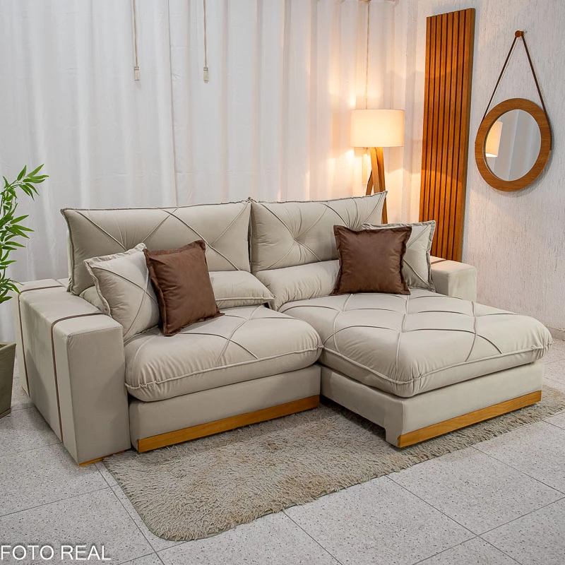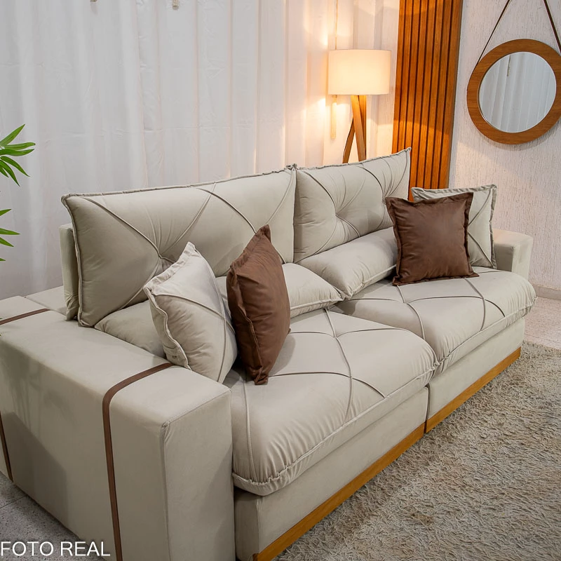 Sofá Retrátil Reclinável Gran Bello 2.30m Veludo Bege – Molas Ensacadas Pocket