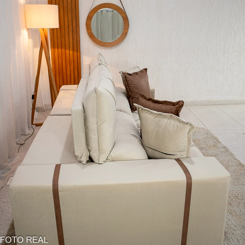 Informamos que é normal haver uma abertura entre os módulos dos sofás retráteis. Essa abertura é necessária para evitar atrito entre os módulos durante o movimento de abrir e fechar, prevenindo o desgaste do tecido.