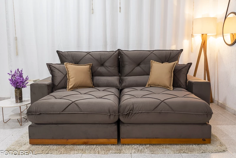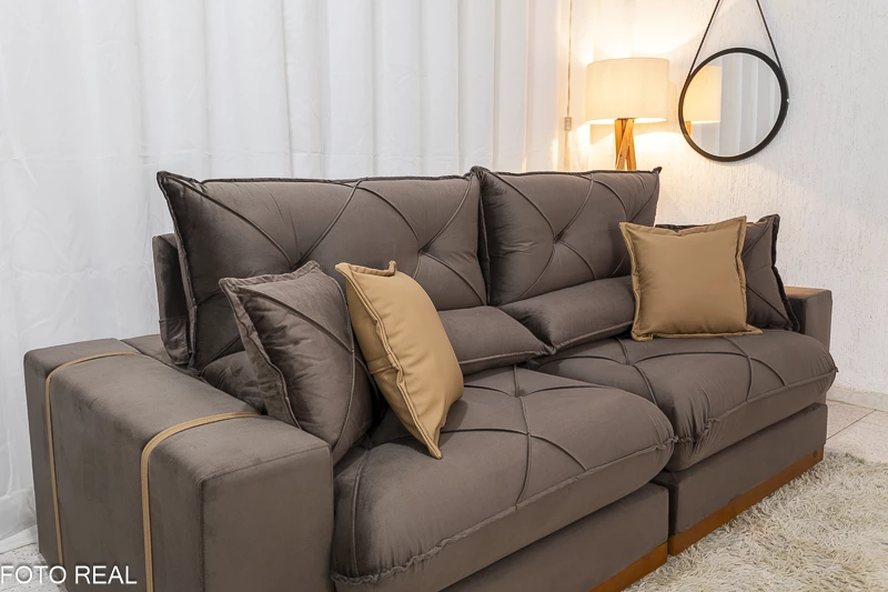 Informamos que é normal haver uma abertura entre os módulos dos sofás retráteis. Essa abertura é necessária para evitar atrito entre os módulos durante o movimento de abrir e fechar, prevenindo o desgaste do tecido.