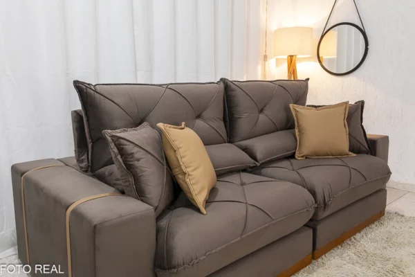 Sofá Retrátil Reclinável Gran Bello 2.30m Veludo Marrom 19 – Molas Ensacadas Pocket
