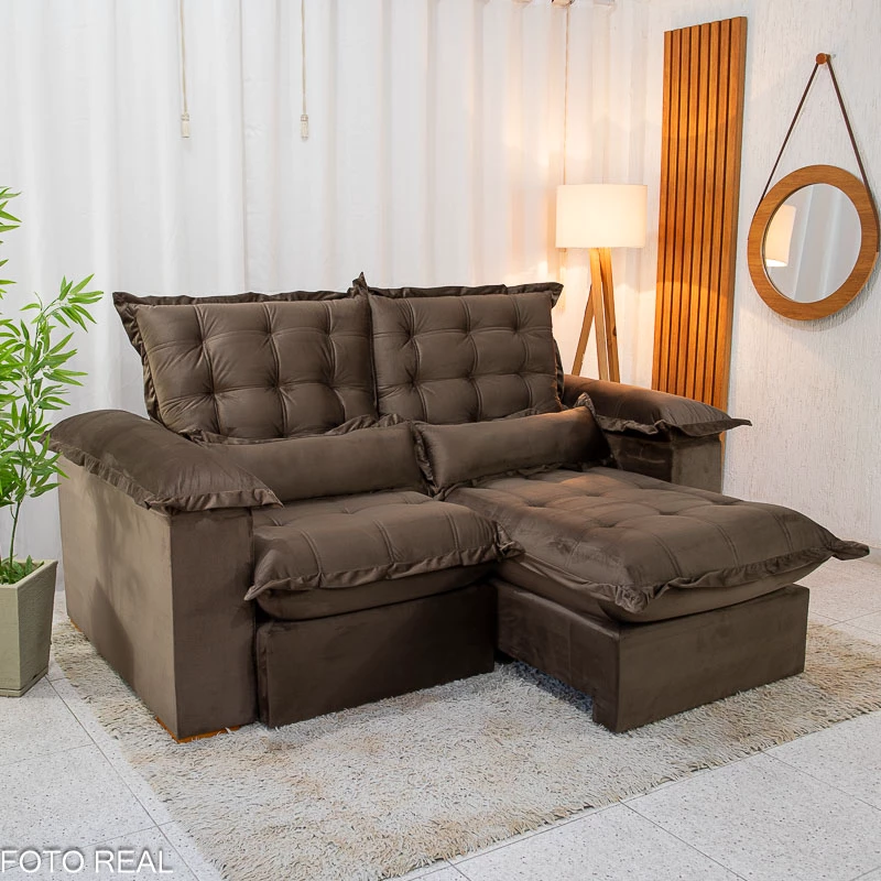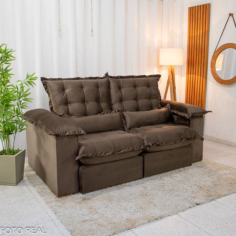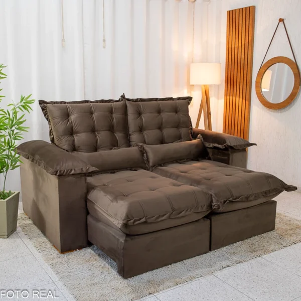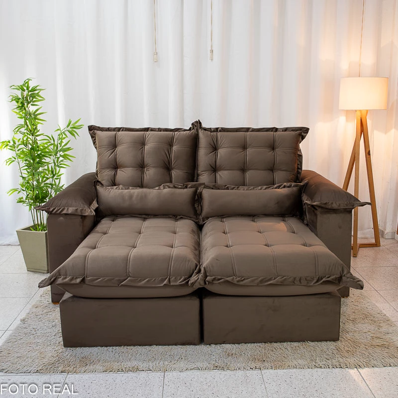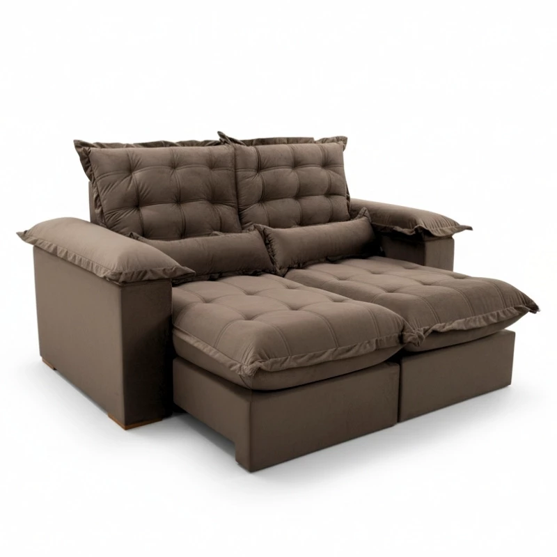 Sofá Retrátil Reclinável Maldivas 2.10m Veludo Marrom A17 – Espuma Pró Aditivada