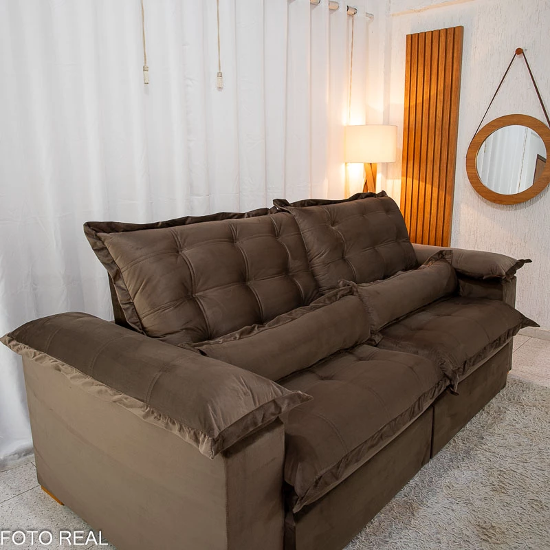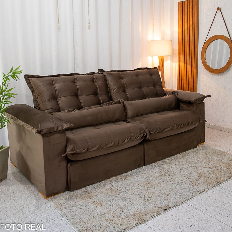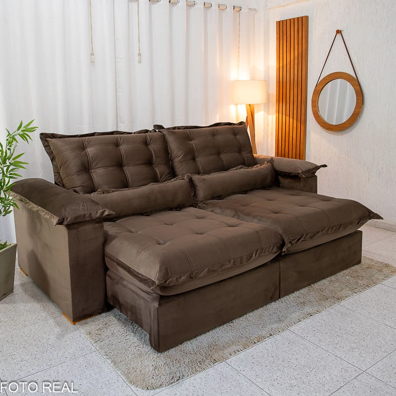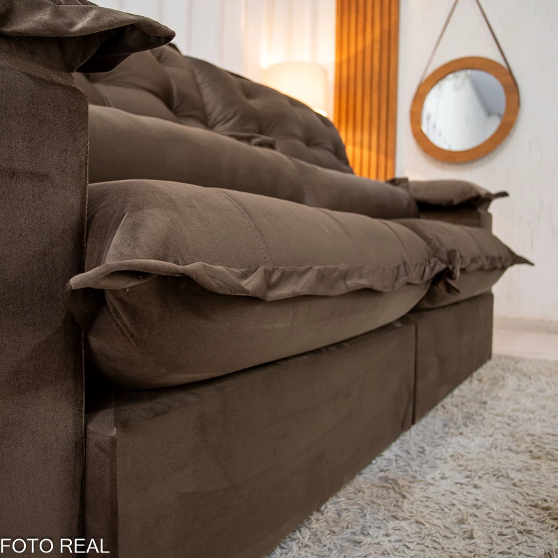 Sofá Retrátil Reclinável Maldivas 2.30m Veludo Marrom A17 – Espuma Pró Aditivada
