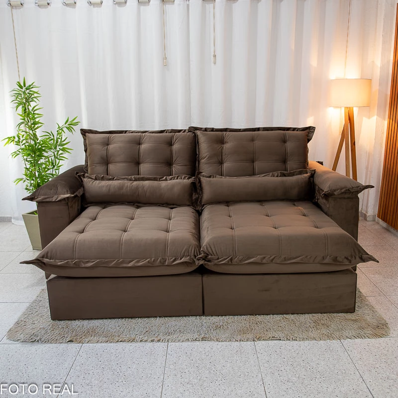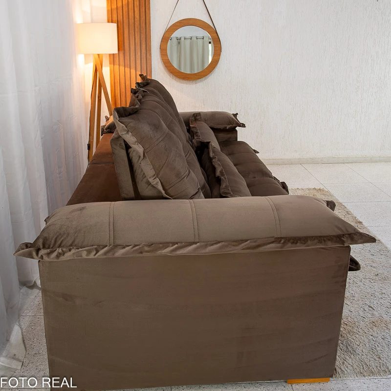 Sofá Retrátil Reclinável Maldivas 2.30m Veludo Marrom A17 – Espuma Pró Aditivada.R