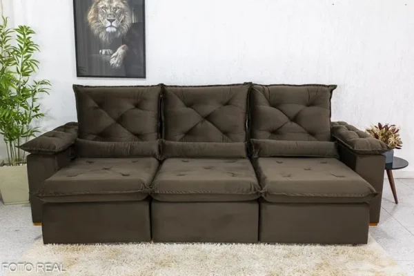 Informamos que é normal haver uma abertura entre os módulos dos sofás retráteis. Essa abertura é necessária para evitar atrito entre os módulos durante o movimento de abrir e fechar, prevenindo o desgaste do tecido.