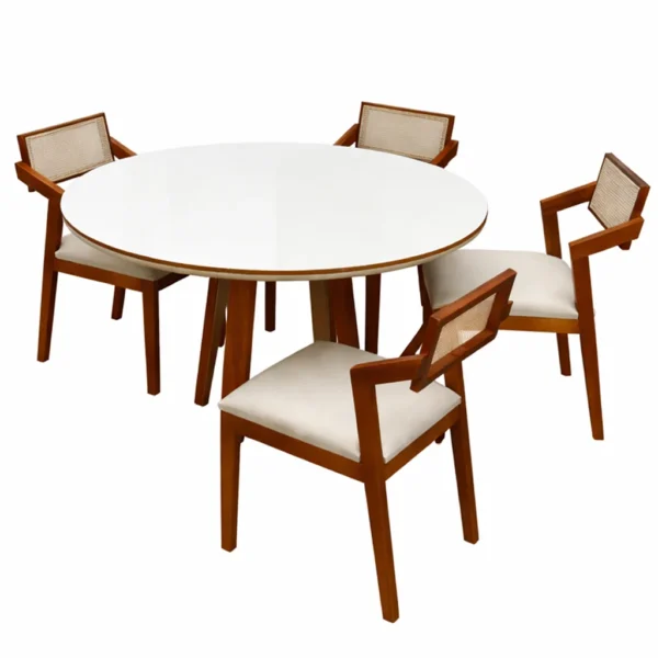 Mesa Berlim 100 Cinamomo/Off White com 4 Cadeiras Gaya Linho Bege 01 – CEL MÓVEIS + J SILVA MÓVEIS.T